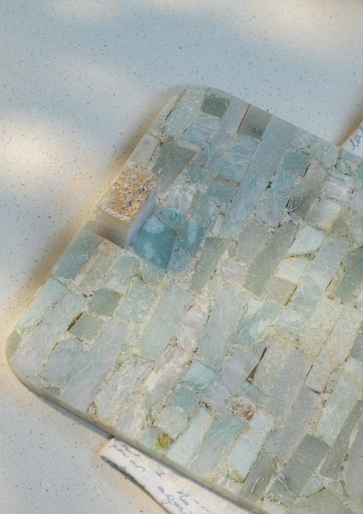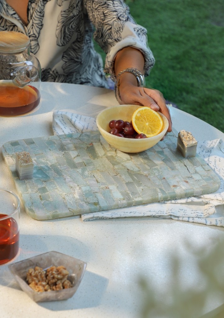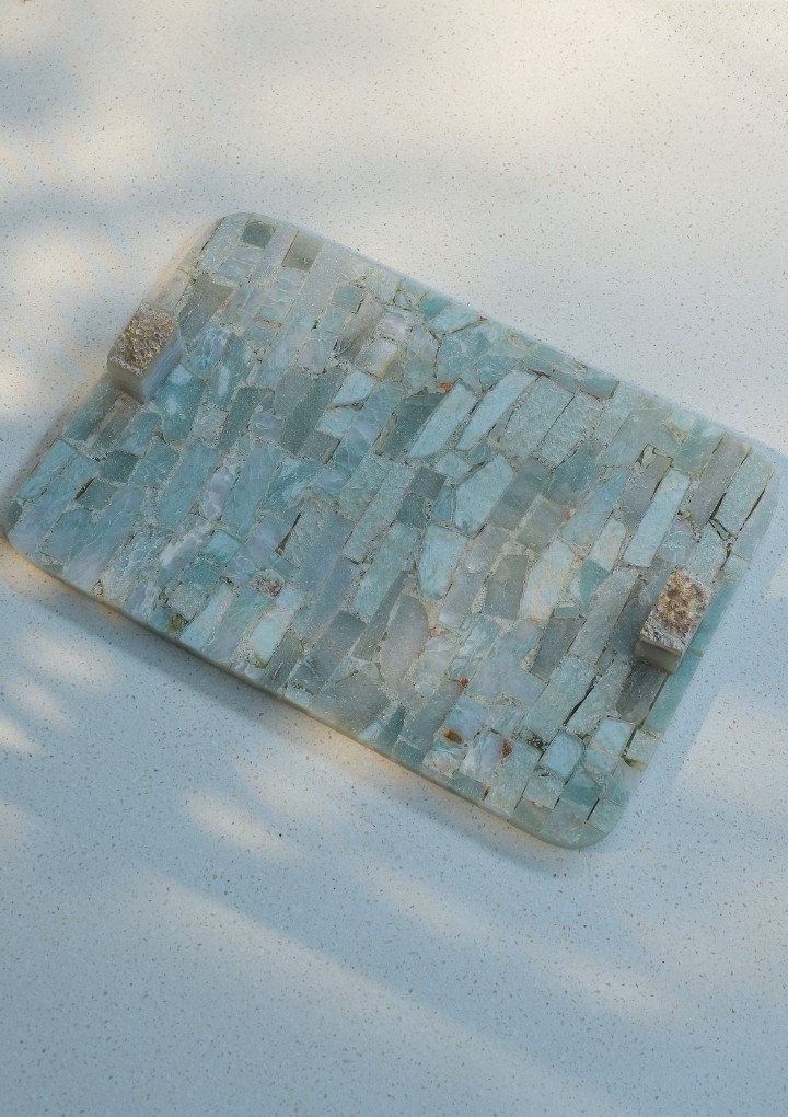 Green aventurine is a prosperity stone, a comforter and all round healer. The platter is created by setting multiple semi-precious stones together in epoxy to make them sturdy, durable and easy to clean. Its unique design makes it a stunning piece for any occasion or perfect gift for housewarming or birthdays.