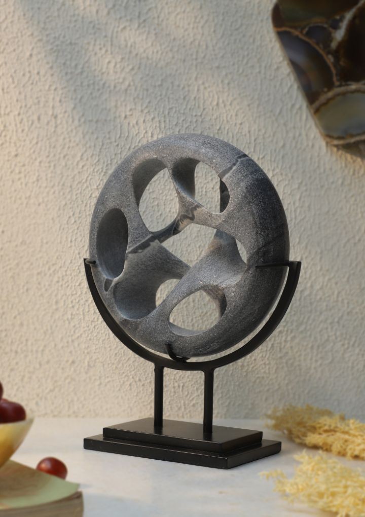 This stunning accent has a unique and contemporary design. Its circular finish with carved holes adds artistic appeal to any room’s décor. Place it under the lamp or put the led behind and let the beauty of light and shadow unfold.
