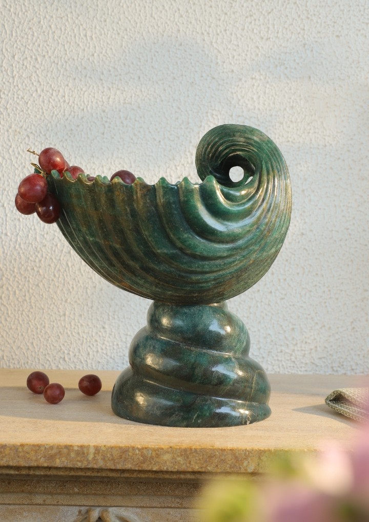 Green Aventurine Peacock Fruit Bowl – A Symphony of Nature and Art