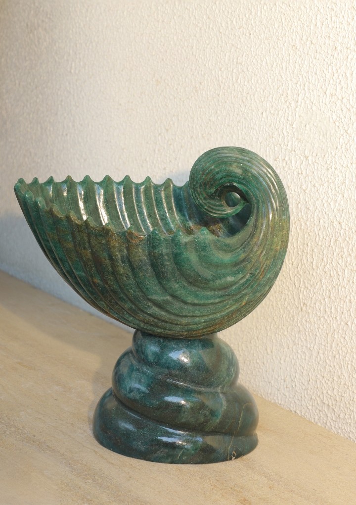 Every piece is a unique creation, showcasing the stone’s natural jade-green tones and shimmering mineral inclusions that catch the light beautifully, adding a luxurious, organic charm to your dining or living space.