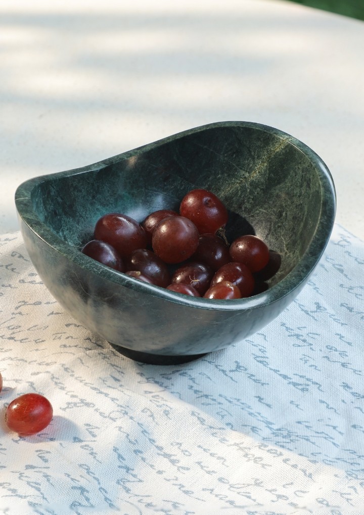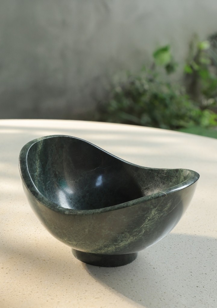 This highly functional bowl is perfect for your coffee table or kitchen. Maintenance free, can be used to keep fruits, pebbles, flowers, party appetisers. Handcrafted to perfection in natural green stone adding vibrant colour to your space. Its unique design will bring elegance to your table.