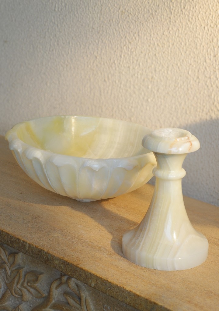 Vanilla Onyx Carved Fruit Bowl – A Touch of Timeless Luxury